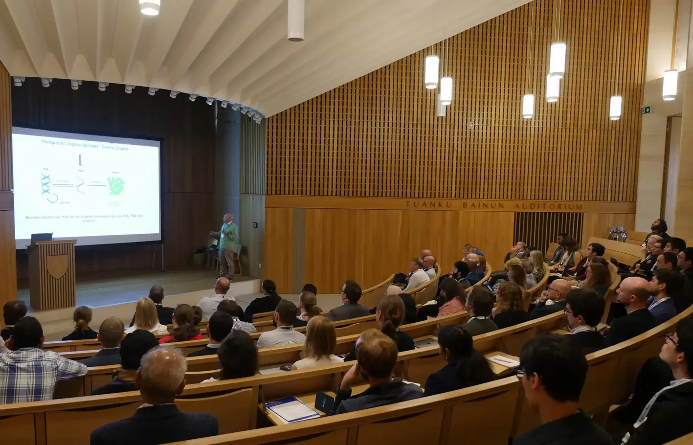 Held in the award-winning Sultan Nazrin Shah Centre, the symposium featured six presentations by leaders and innovators in the field of oligonucleotides across a wide range of applications. Professor Tom Brown, founder of ATDBio and leader of the Oxford University Nucleic Acids Group, delivered the keynote on Artificial Nucleic Acid Backbones for Biology and Therapeutics. His talk was followed by Professor Lorna Harries, CTO of Senisca, who discussed how Senisca's technology can reverse signs of cellular ageing and markers of age-related diseases. Dr Adam Cribbs of Caeruleus Genomics then presented on Addressing Errors and Artefacts in Long-Read Single-Cell Sequencing: Challenges and Solutions.